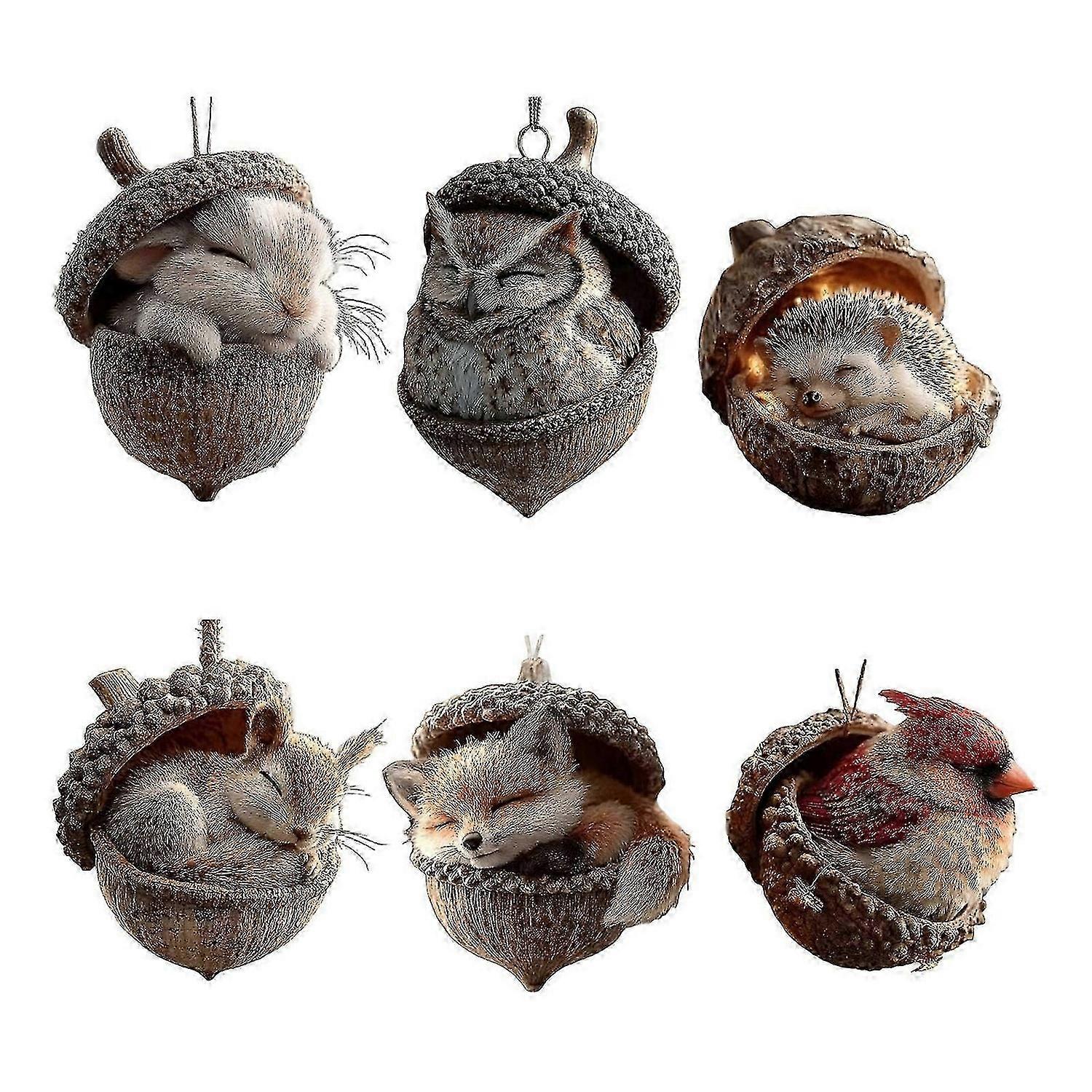 Bring the magic of the forest into your home this holiday season with these adorable forest animal acorn ornaments!<br> Each ornament depicts a sleeping little forest frienda squirrel, fox, owl, bird, bunny, or hedgehogquietly tucked inside a realistic acorn shell.<br> Beautifully handcrafted with intricate details and warm, natural tones, these ornaments will add a touch of warm, rustic charm to your Christmas tree or cozy home decor.<br> Holiday and Year-Round Decor: Perfect for Christmas trees, garlands, wreaths, or tabletop decorations.<br> Perfect Gift Idea: A thoughtful gift for nature lovers, animal lovers, or anyone who appreciates the cozy atmosphere of the woodland.<br> ItemName:ChristmasOrnaments<br> Material:Acrylic<br> Style:Animal<br> ApplicableHolidays:Christmas<br> Features:Stunning,Charming,Eye-catching<br> SizeDetails:<br> L: 10cm/3.94",W: 10cm/3.94", H: 0.3cm/0.12" (Approx.)<br> Notes:<br> Duetothelightandscreensettingdifference,theitem'scolormaybeslightlydifferentfromthepictures.<br> Pleaseallowslightdimensiondifferenceduetodifferentmanualmeasurement.<br> PackageIncludes:<br> Owl,Squirrel,Rabbit,Fox,Hedgedog,Bird:<br> 2xChristmasOrnaments<br> or<br> 1Set:<br> 6xChristmasOrnaments