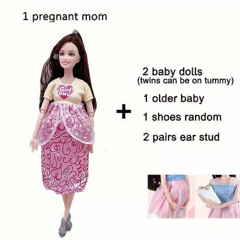 Pregnant Doll Have a Baby in Her Tummy Mom Doll Pregnant Mom Toy with 2 Baby Dolls Playsets Accessories for Girls Boys Gift
