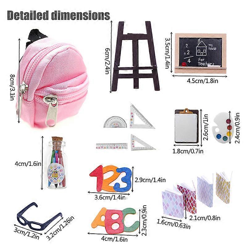 1Set 1:6 Dollhocome Miniature School Stationery Supplies Ruler Schoolbag Pencil Blackboard Holder Glasses Model Decor Toy