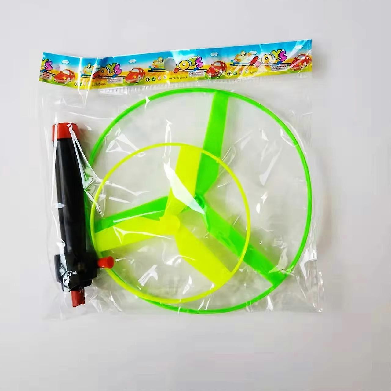 Flying Disc Toy Helicopter Playset Include 1 String Launcher and 2 Flying Saucer Outdoor Flying Disc Launcher Toy Random Colors