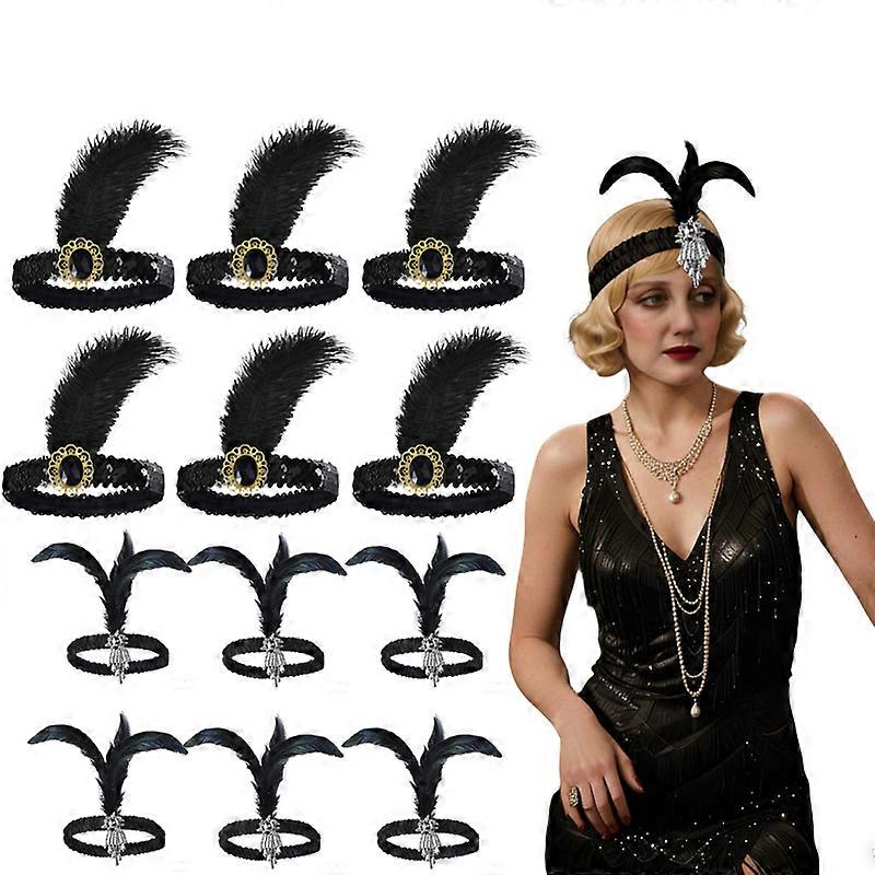 6-48PCS 1920s Flapper Headband Gatsby Accessories for Women Feather Headpieces Hair Accessories for 20s Theme Party Carnival