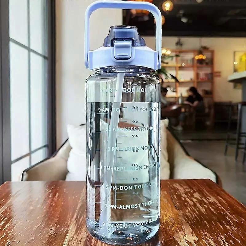 2L Portable Sports Water Bottle with Straw Time Marker Plastic Drink Cup for Outdoor Activities
