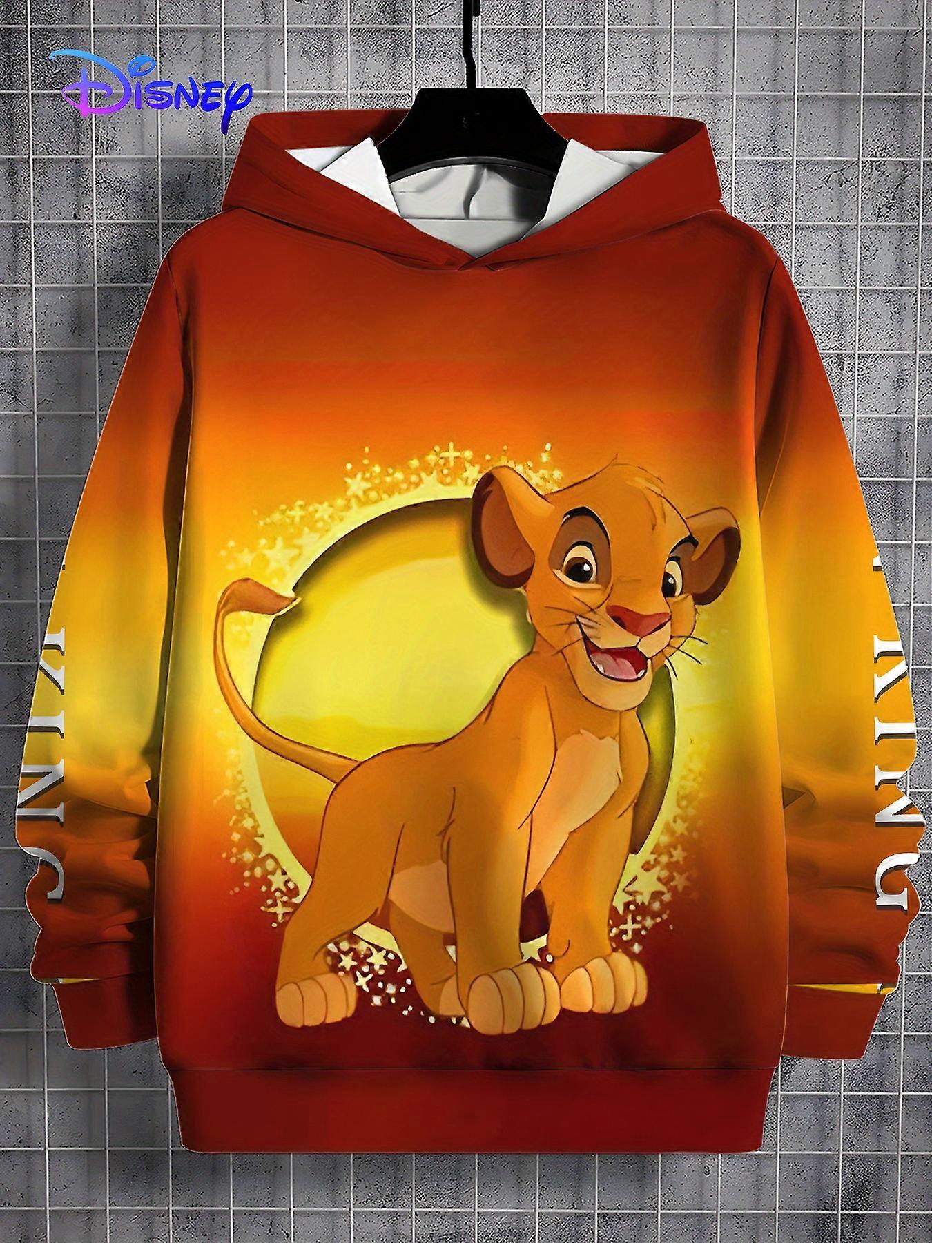 Disney Lion King Girls Hoodie Sweatshirt - Simba Graphic Back Red-to-Orange Gradient Soft Fleece-Lined Pullover Back-to-School