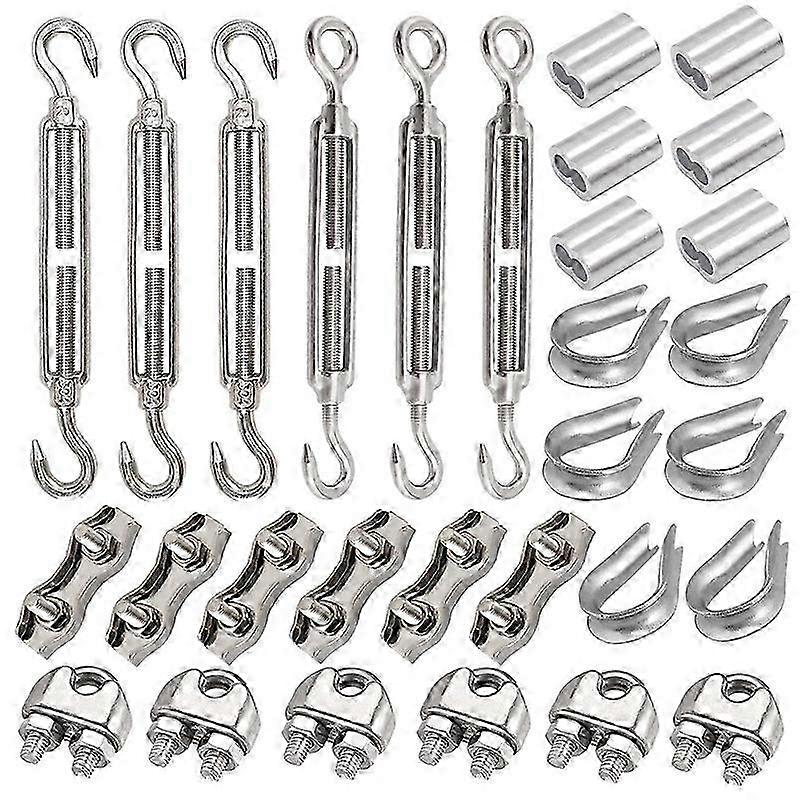 M5 Wire Tensioner Set for Tightening, 30 Turnbuckles with Thimbles and Press Clamps