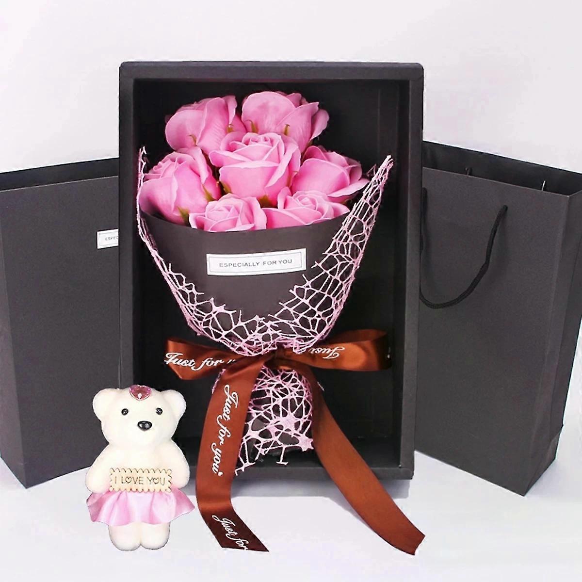 Handmade 7 Rose Soap Bouquet, Little Bear Gift Box, Valentine's Day, Mother's Day, Birthday, Rose Flower Gift