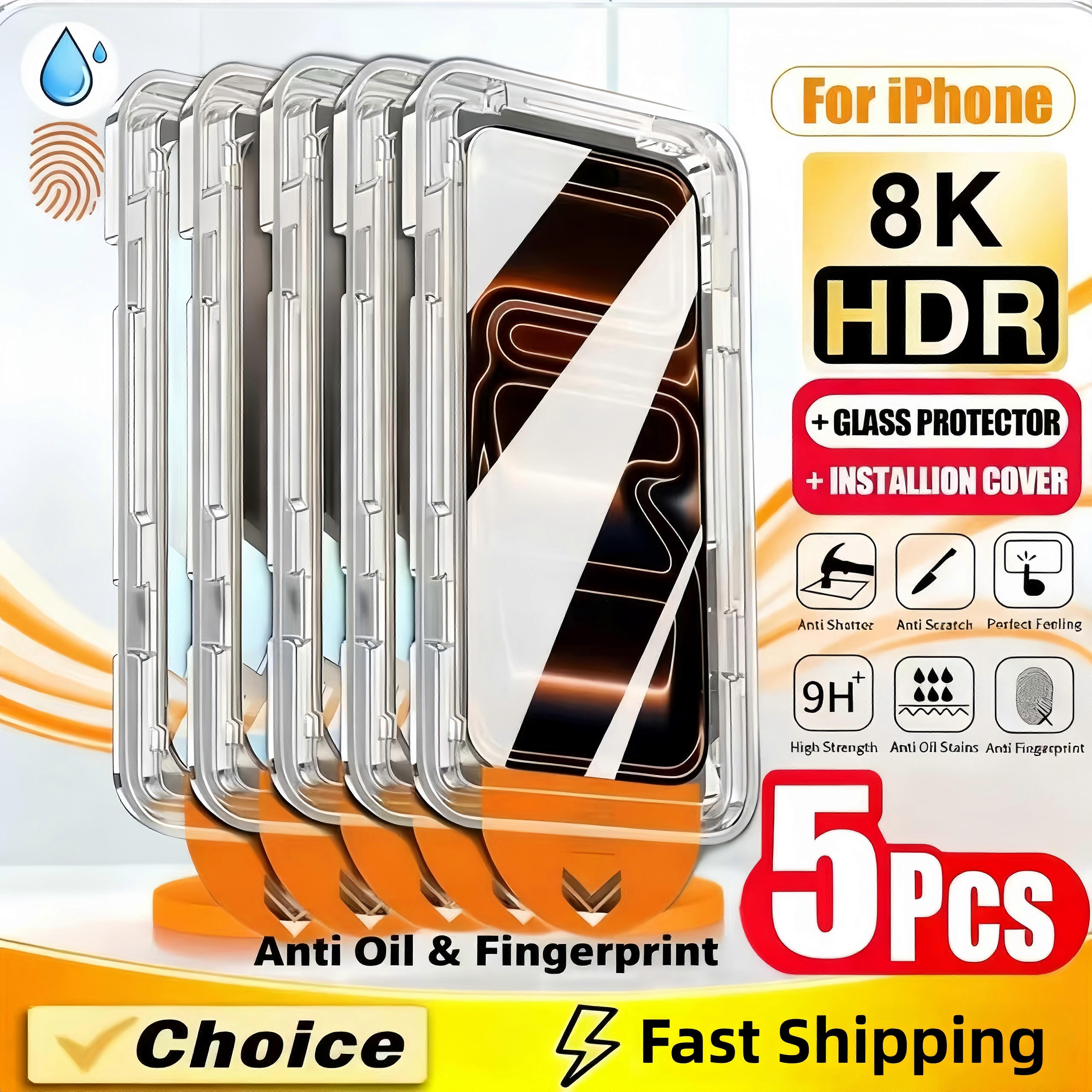 5Pcs HD Oleophobic Coating Dust Free Easy Installation Screen Protector for IPhone17 16 15 14 11 12 13Pro Max XR XS 14 15 16Plus