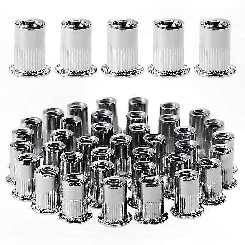 100pcs M6 Stainless Steel Flat Head Rivet Nuts, Threaded Inserts for Plastic & Metal (12mm, 15mm)