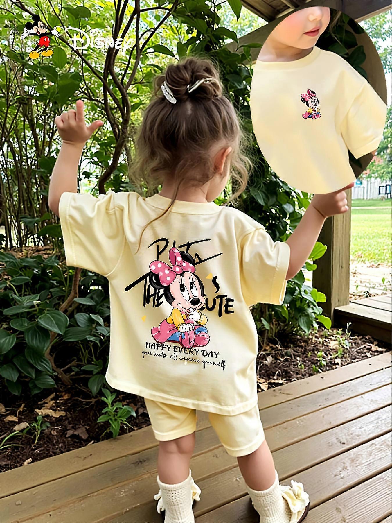 Disney "PINK THE CUTE" Minnie print girls T-shirt comfortable breathable fabric multi-color optional - fashion crew neck short