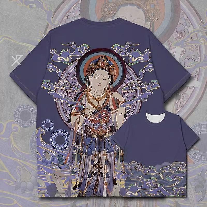 2025 best-selling new 3D printed Buddhist Bodhisattva pattern men's and women's quick-drying breathable sports T-shirt.