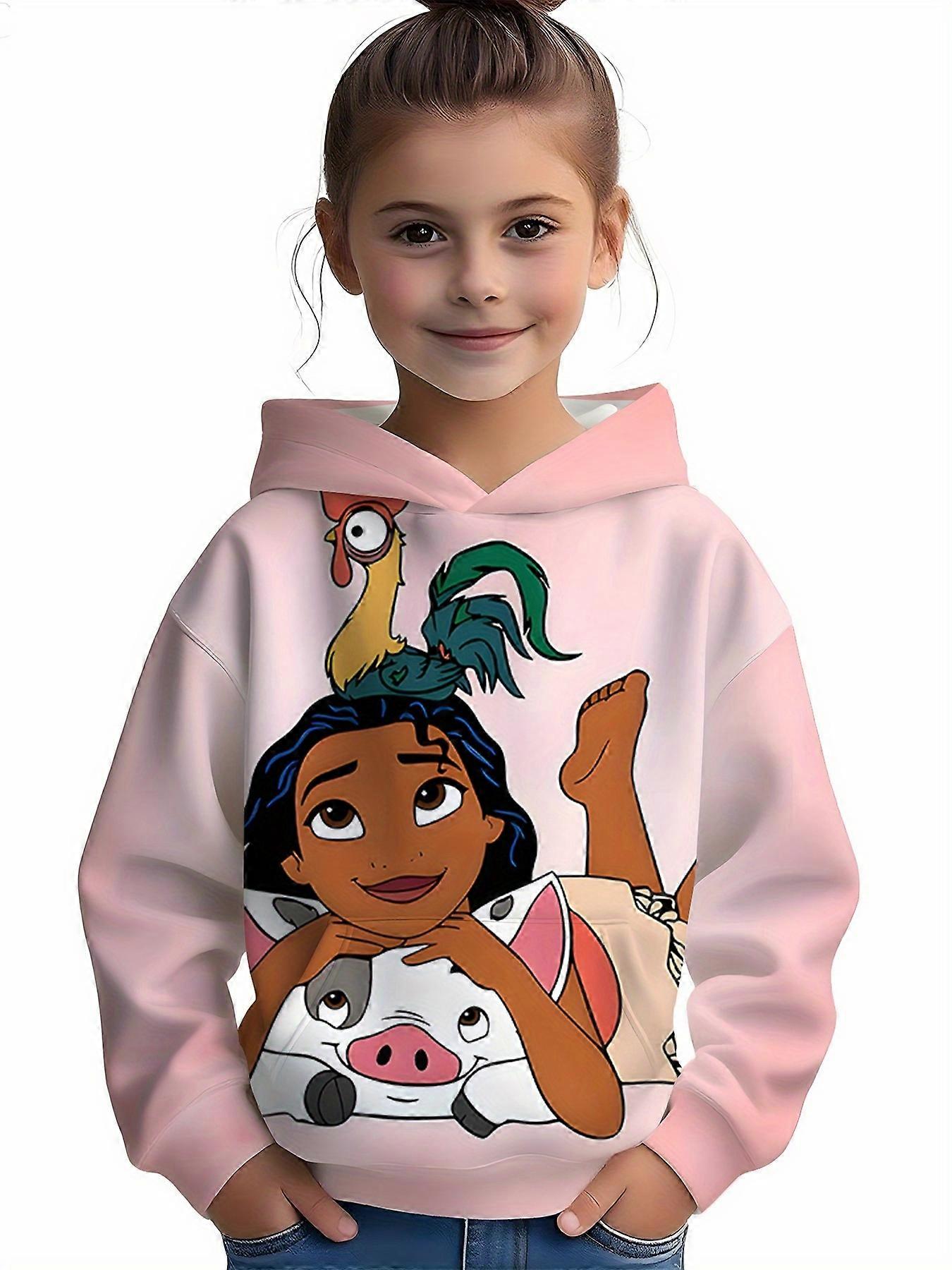 Moana Girls & Boys Hoodie - Official Moana & Pua Pig Rooster Design, Pastel Pink Hooded Sweatshirt for Birthday Party Outfit