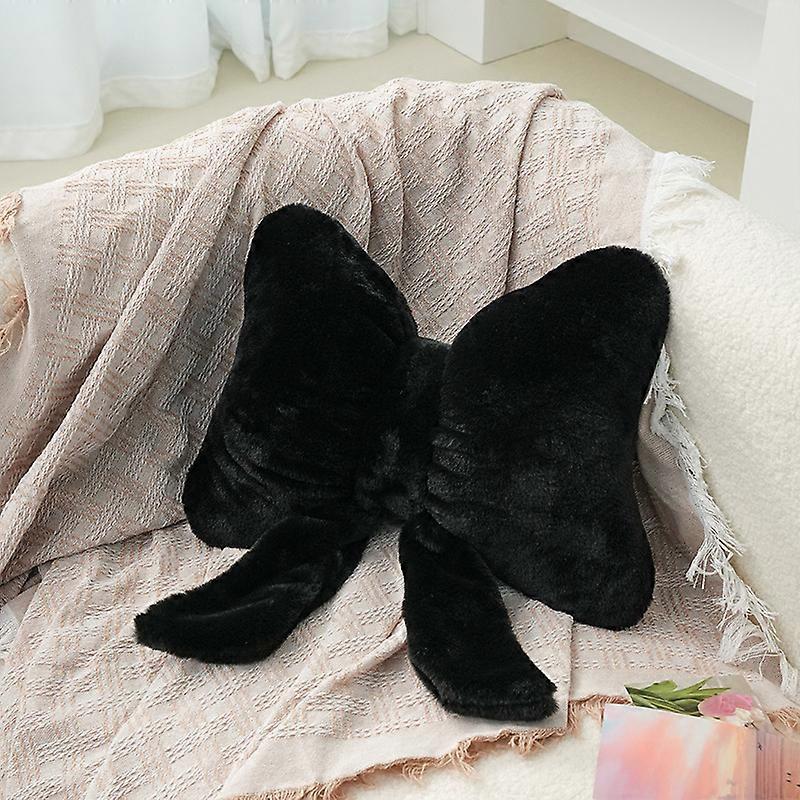 Pink bow ribbon couch pillow imitation rabbit fur comfortable car seat cushion ins style simple all-match back cushion