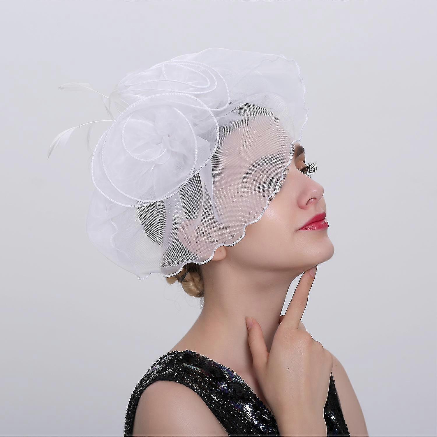 Bridal Flower Hat Organza Mesh Feather Fascinator Headband Clip for Women Ladies Wedding Kentucky De 25-26