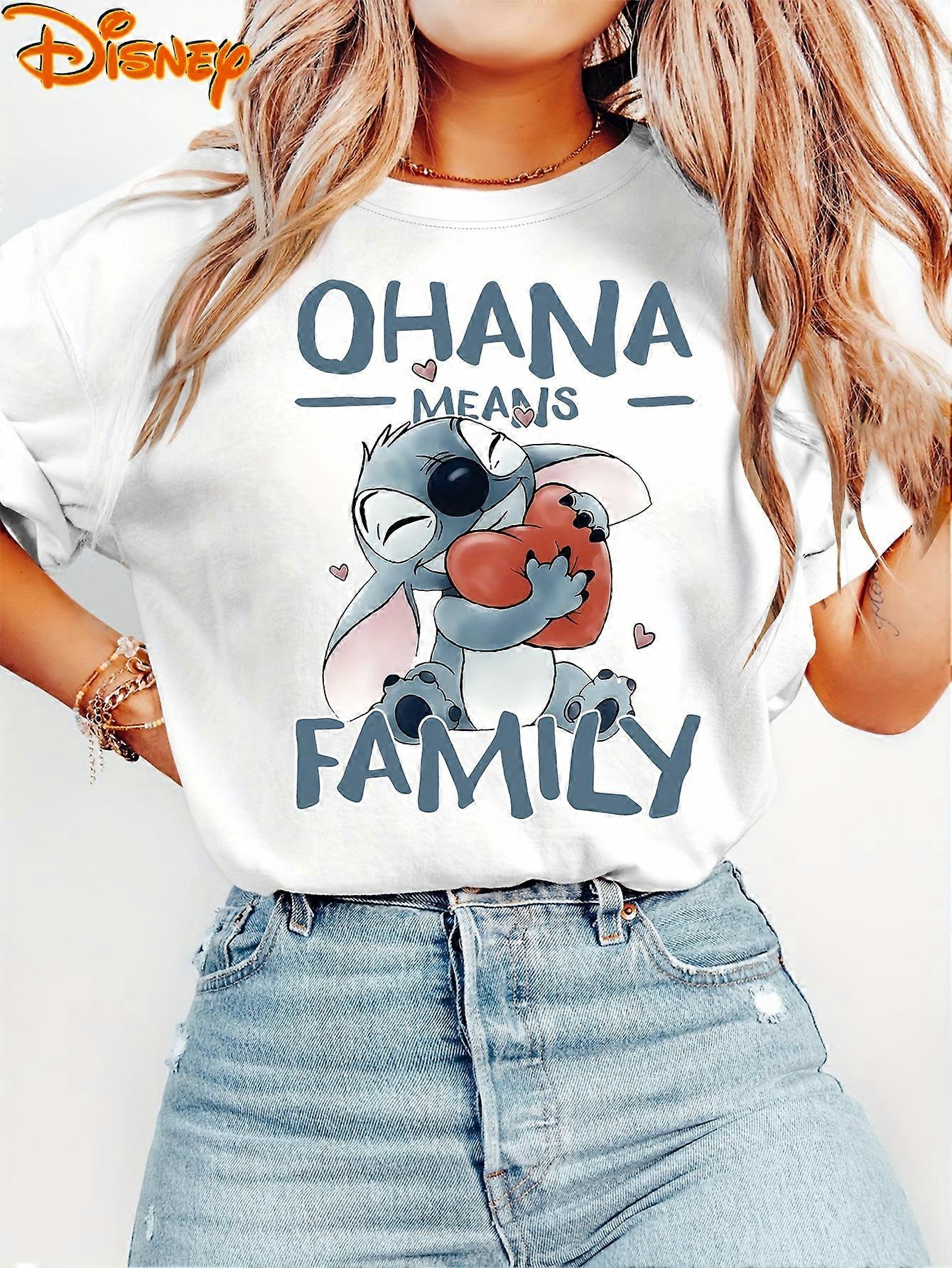 Women'S Stitch Graphic T-Shirt - "Ohana Means Family" Heart Design Casual Crew Neck Short Sleeve Tee for Spring Summer