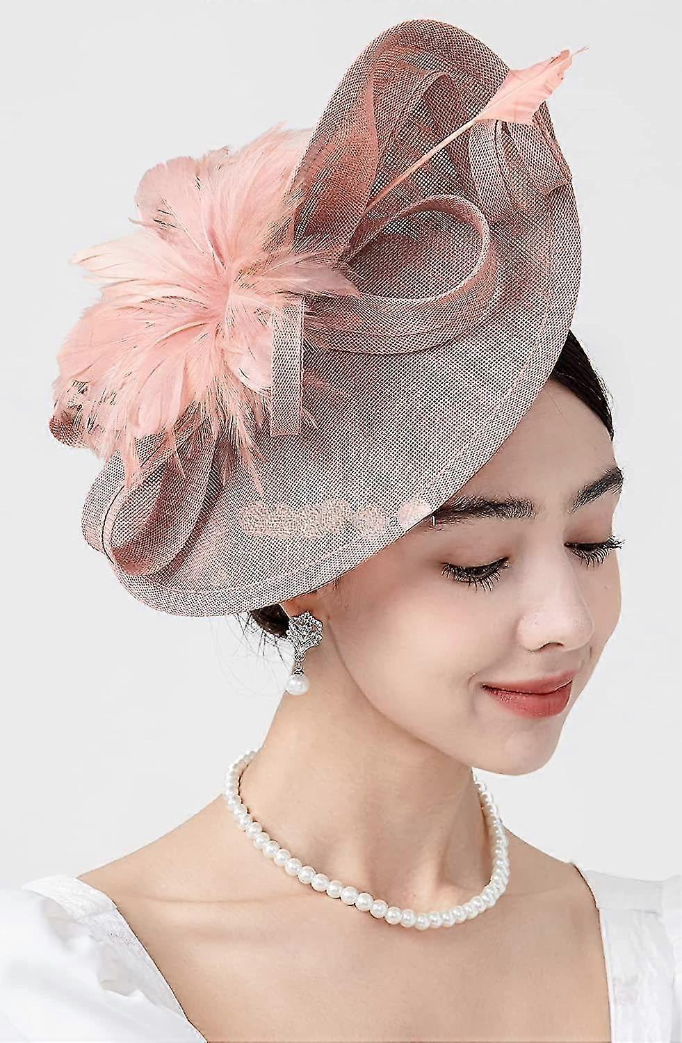 Fascinator Headwear for Women Tea Party Kentucky Derby Fascinator Pillbox Hat Feather Flower Fascina 25-26