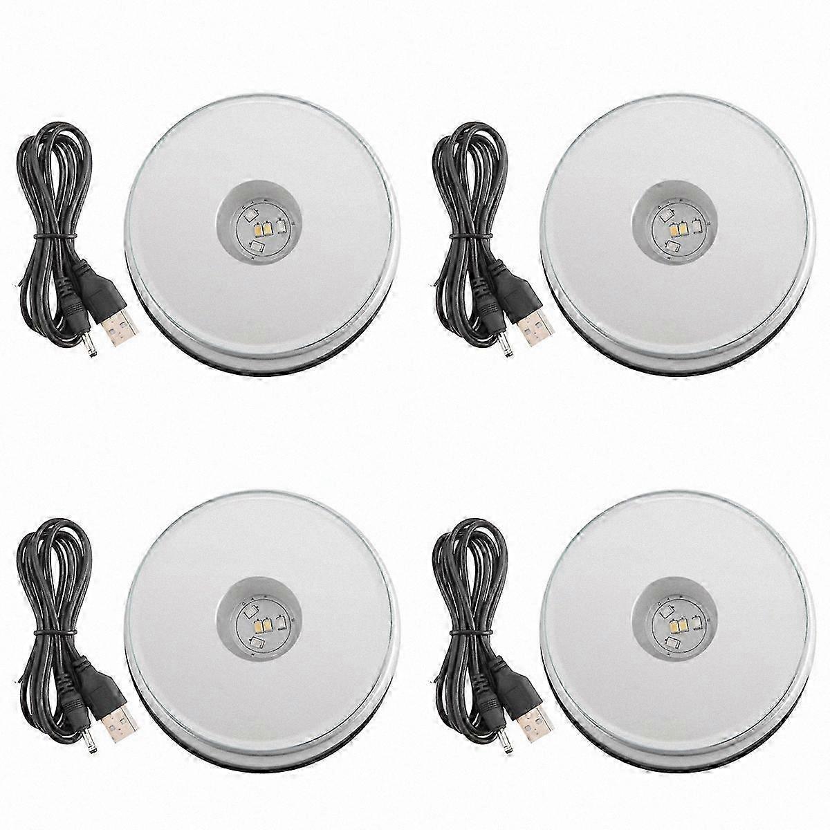 4X LED Crystal Display Turntable Base for Glass Art, Rotating Stand with Colored Lights