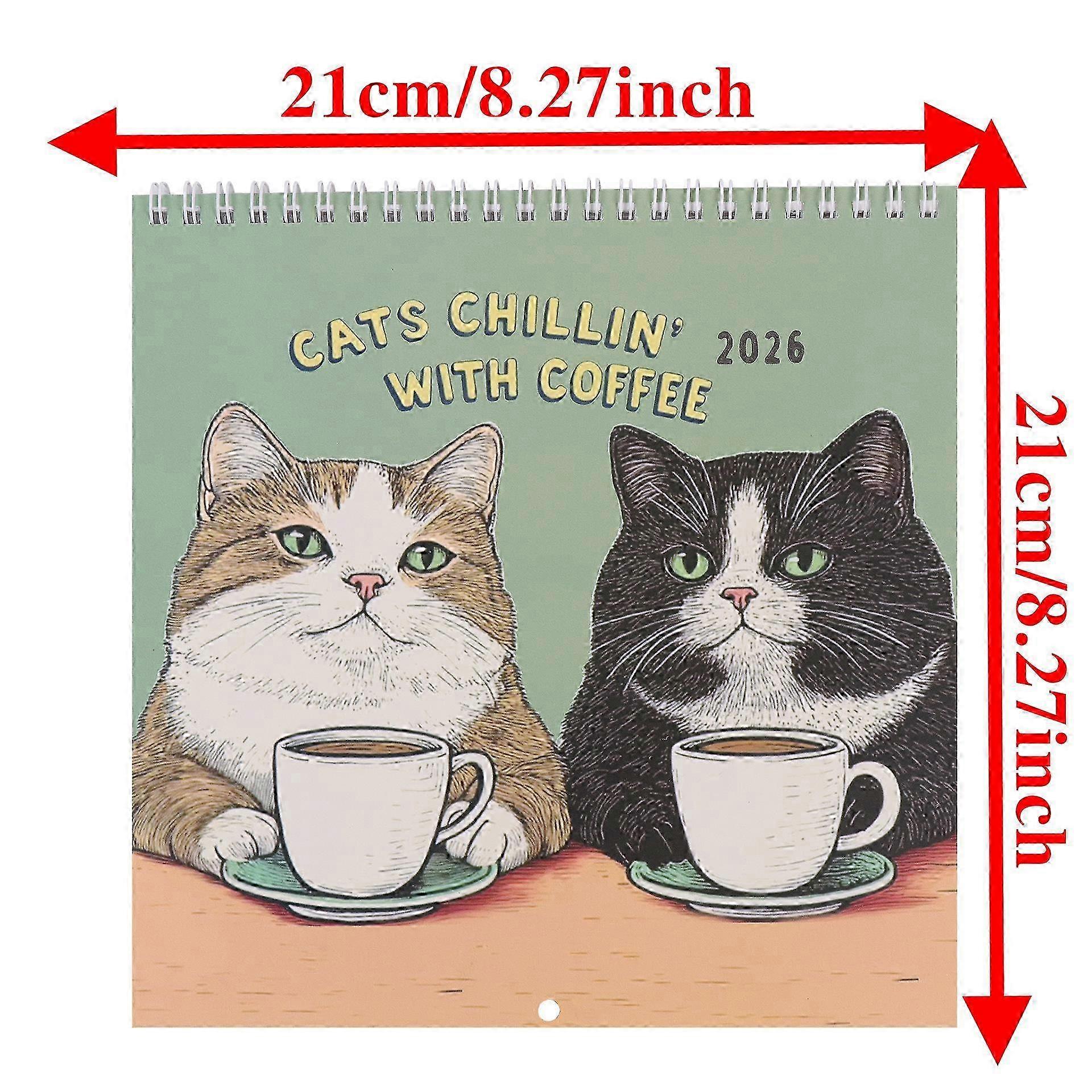 Suitable For Cats Chillin' With Books 2026 Wall Calendar, Funny Cute Cat Calendar Home Decor, Bookish Gift For Book Lovers