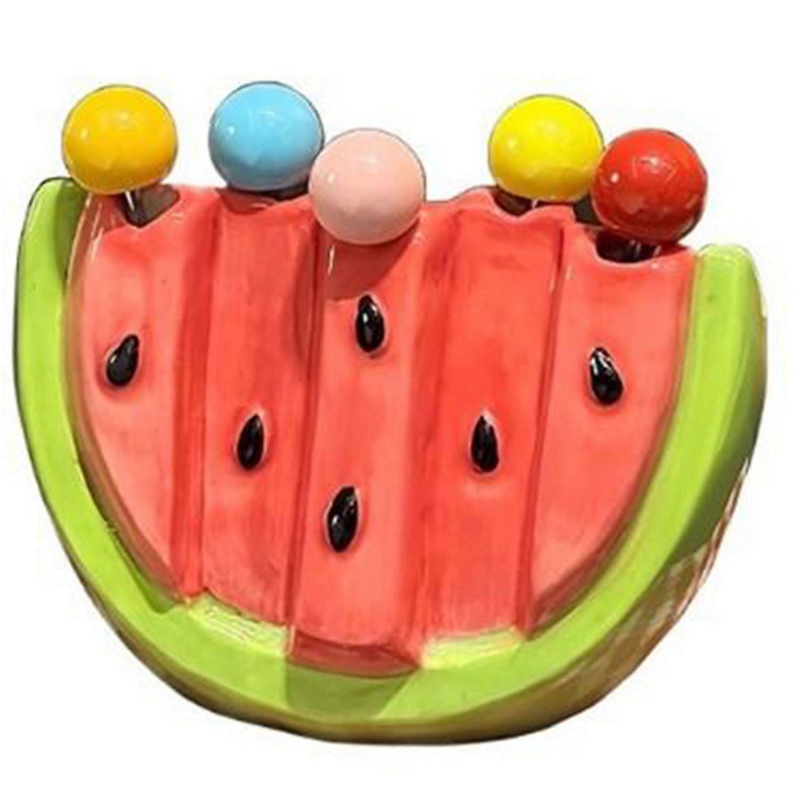 Cartoon Watermelon Fork Set Ceramic Stainless Steel Dessert Fruit Forks Kitchen Storage Can