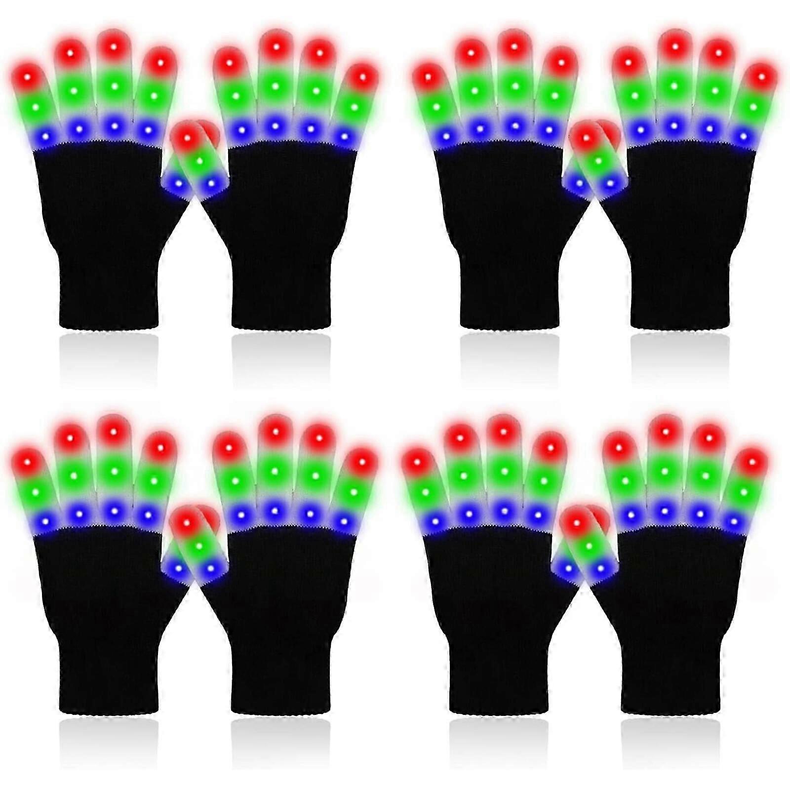 4 Pairs LED Light Up Gloves for Kids Teens Adults Halloween Christmas Party