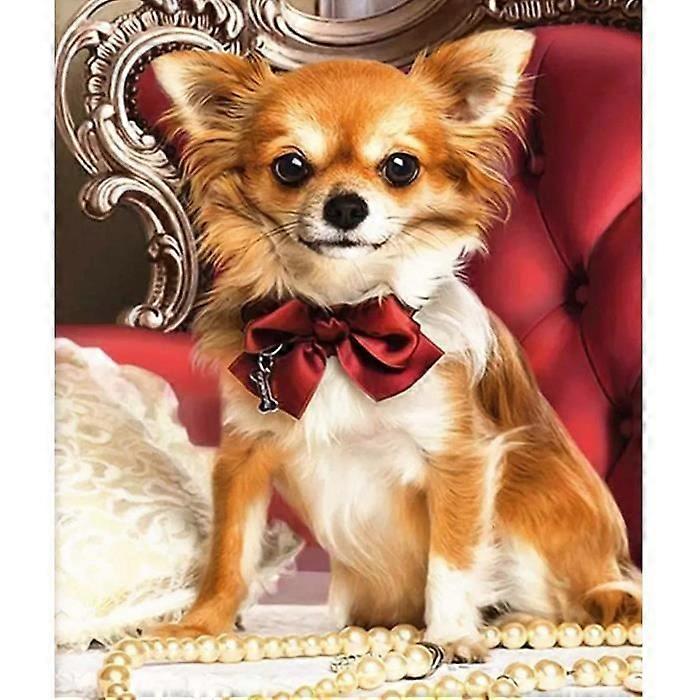 dDR-505 5D Diamond Painting Kit, Chihuahua Dog Design, Full Diamond Embroidery Kit, Children's Size: 30x40cm