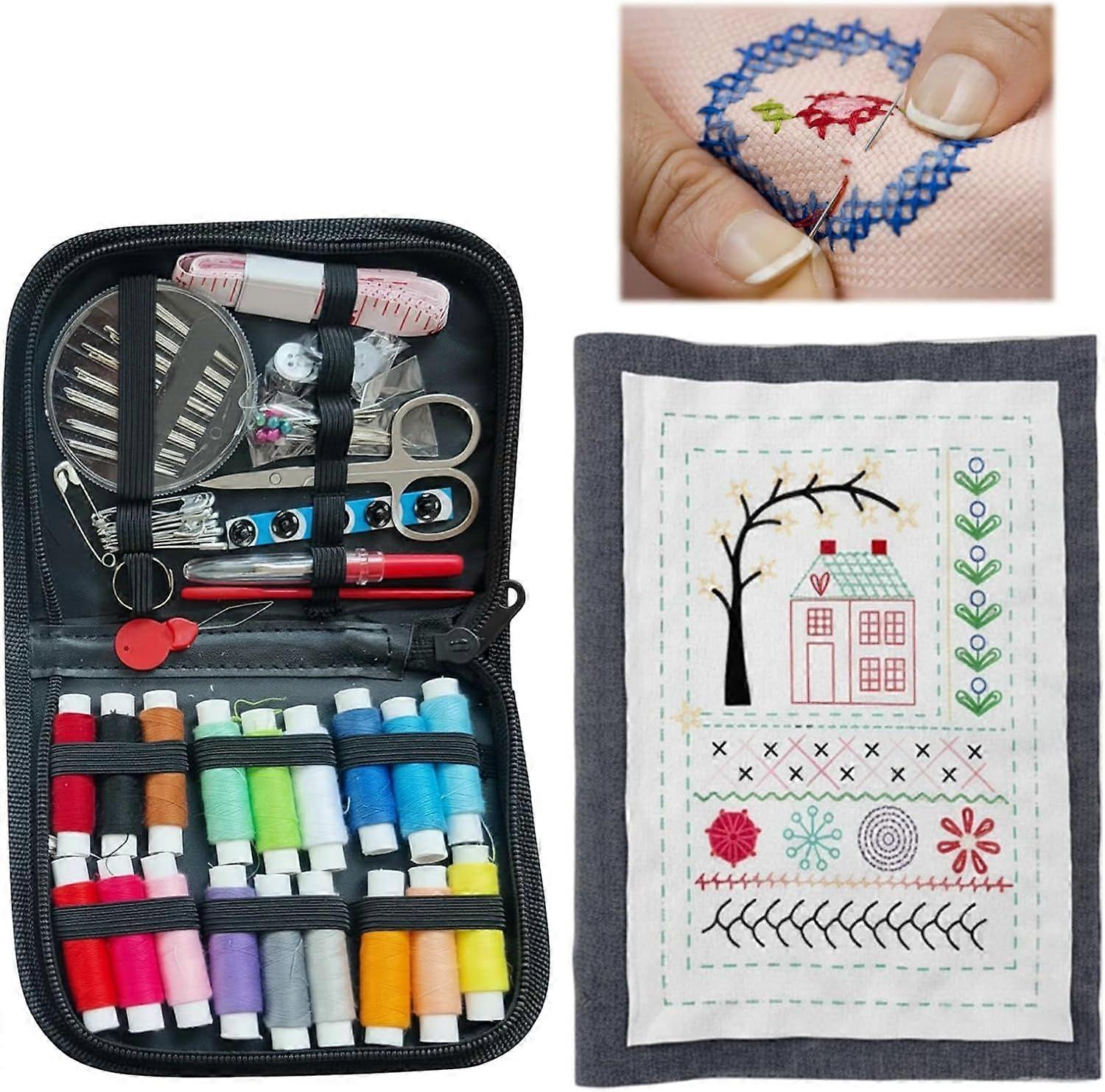 Embroidery Stitch Book, DIY Stitch Books on Linen Fabric, Contains Multiple Sewing Tools, Comprehensive Guide with Various Patterns, Portable Stitchin