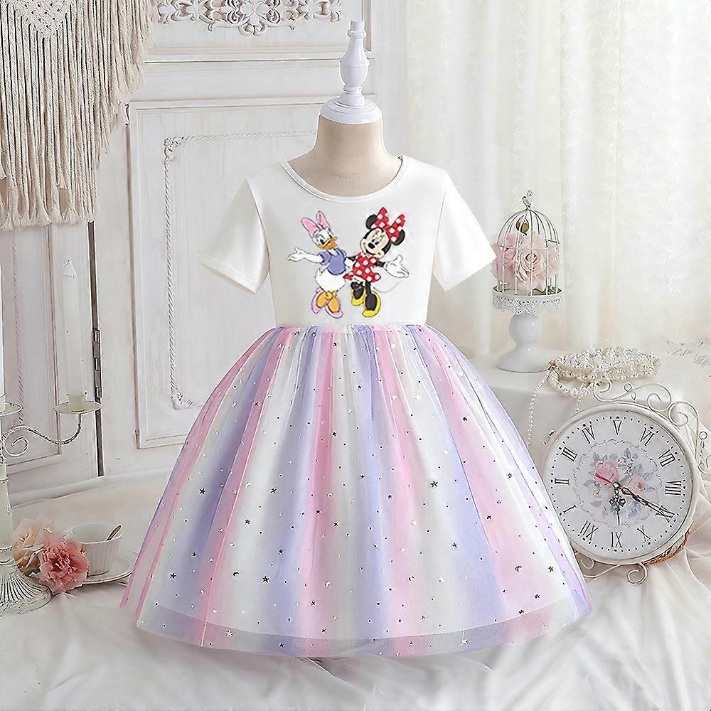 Summer 2025 New Children Short-sleeved Dress Disney Baby Girls Dress For Minnie Princess Dress Kids Clothes Birthday Party 3-8T
