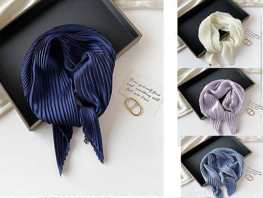 70cm Solid-Color Pleated Silk Scarf with Neckwarmer, Sun Protection Lightweight Scarf, Minimalist Neck Accessory, Pleated Square Scarf for Women