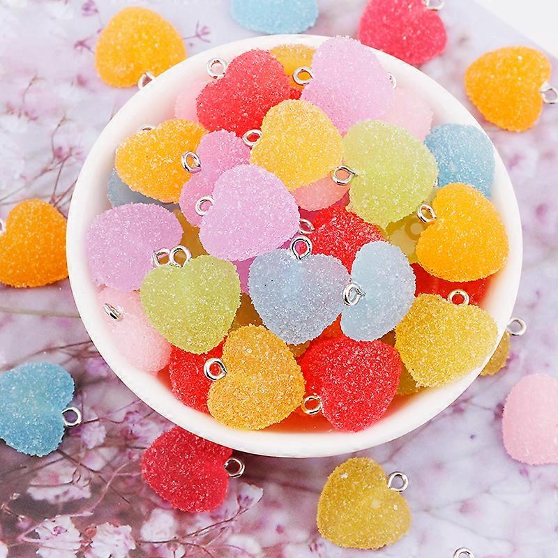 10pcs Colorful Heart Shape Soft Candy Charms Cute Kawaii Resin Pendant Drop Charms for Earring Bracelets Jewelry Making Supplies