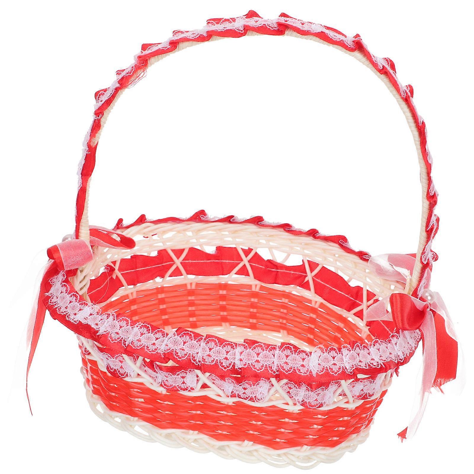 Wedding Flower Basket for Storage Use Red Flower Girl Basket