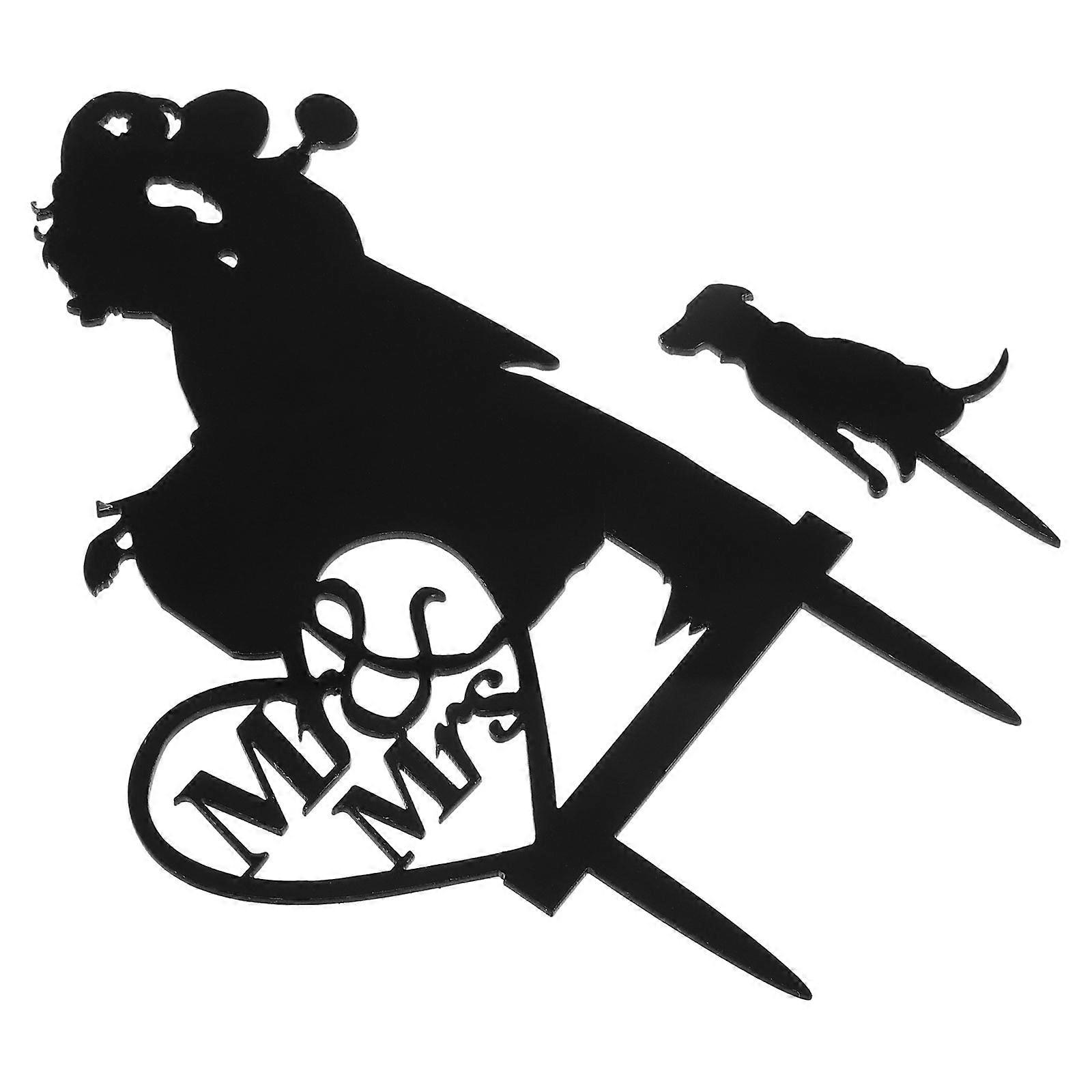 Vintage Wedding Cake Topper Bride And Groom With Dog Acrylic Decoration Keepsake For Engagement Party 15.30X10.50X0.20CM 1Pack
