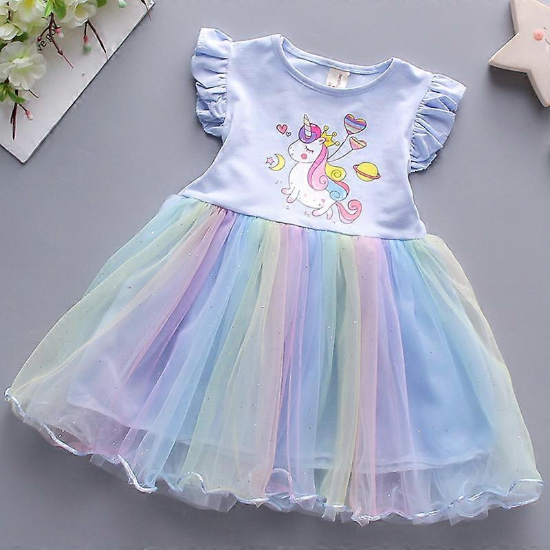 Girls Dress 2025 New Summer Princess Dresses Flying Sleeve Kids Clothes Unicorn Party Baby Dresses For Children Clothing 3-8Y