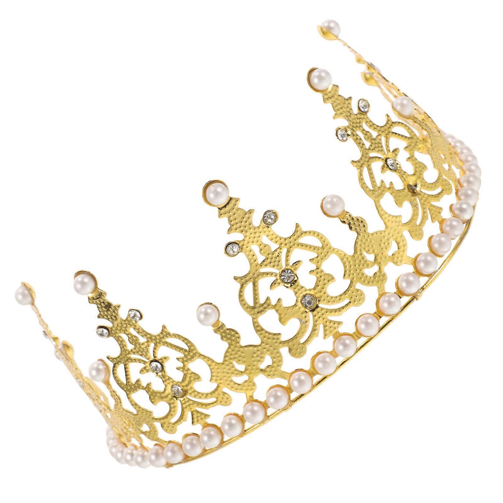 FRCOLOR 1pc Prince Crown Alloy Pearl Hair Accessory for Wedding Supplies Golden