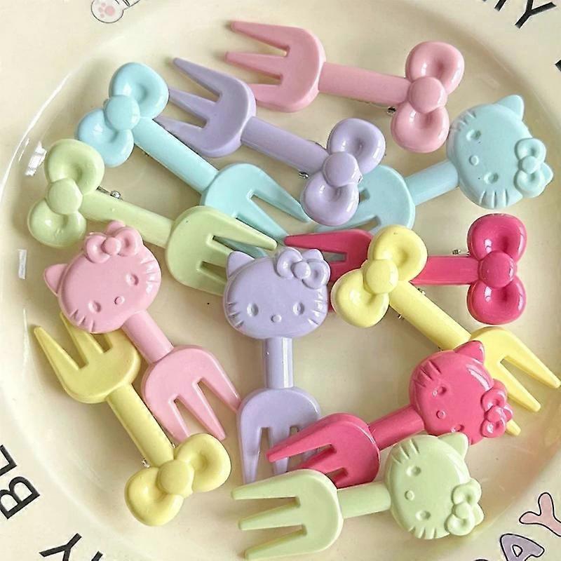 10pcs Fruit Fork Kawaii Cartoon Anime Figure Kt Cat Bowknot Model Dessert Cake Chocolate Fork Funny Candy Color Party Decoration