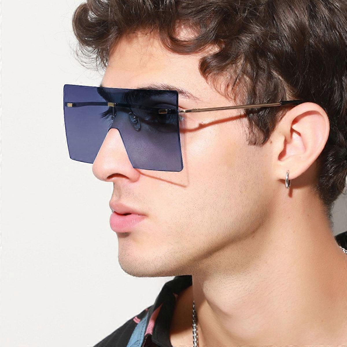 And America Style Square Large Rimless Frame One piece Sunglasses