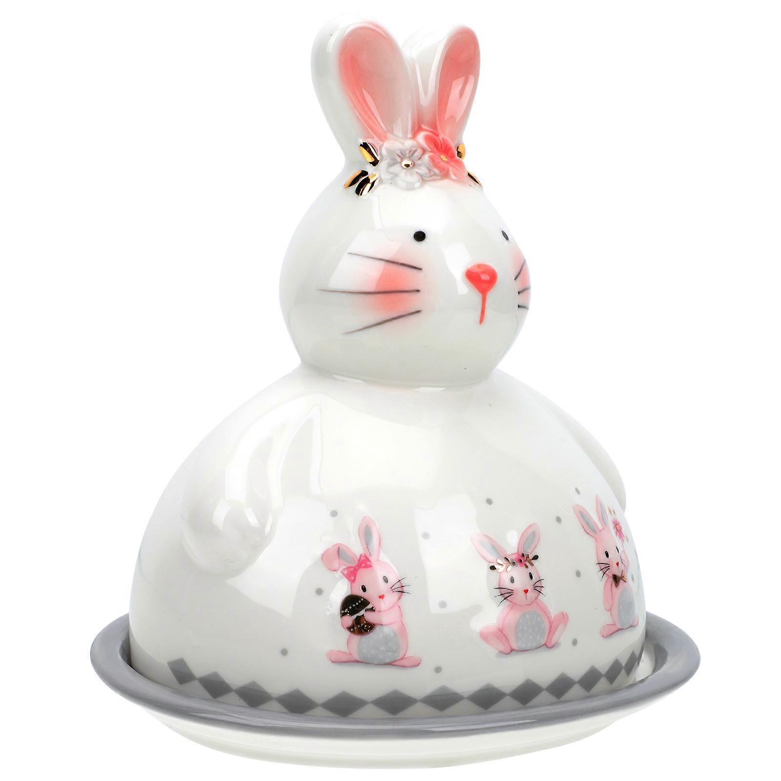 White Ceramic Butter Tray for Storage Rabbit Shaped Butter Plate