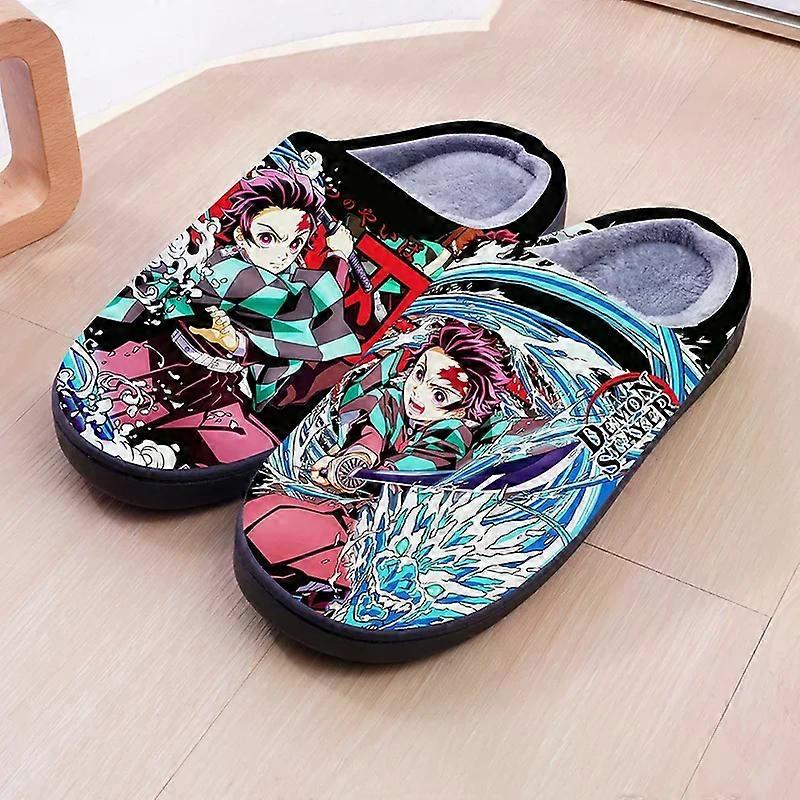 Attack On Titan Demon Slayer Warm Plush Cosplay Slipper Couple Indoor Non-slip House Slides Men Women Toe Wrap Home Cotton Shoe