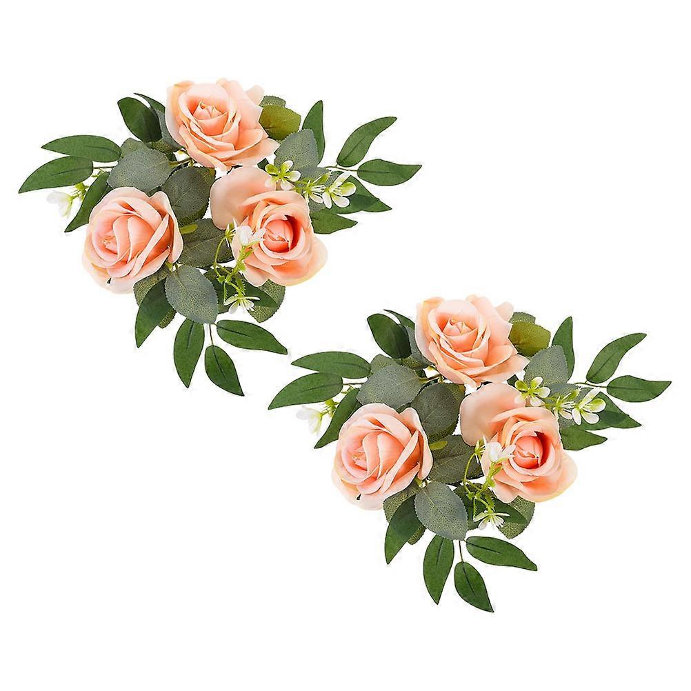 2Pcs Artificial Flower Candle Ring Realistic Rose Wreath Tea Light Holder