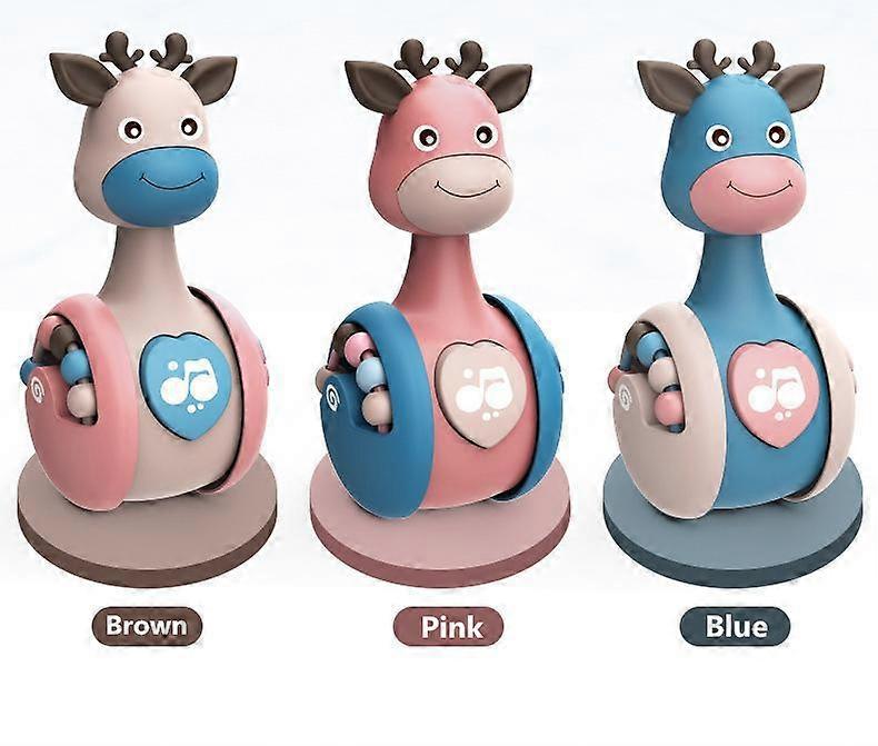 Infant Sensory Toy Cute Deer Sliding Tumbler for Babies 0-12 Months Soft Teether Rattle Ball for Kids' Early Development and Pla