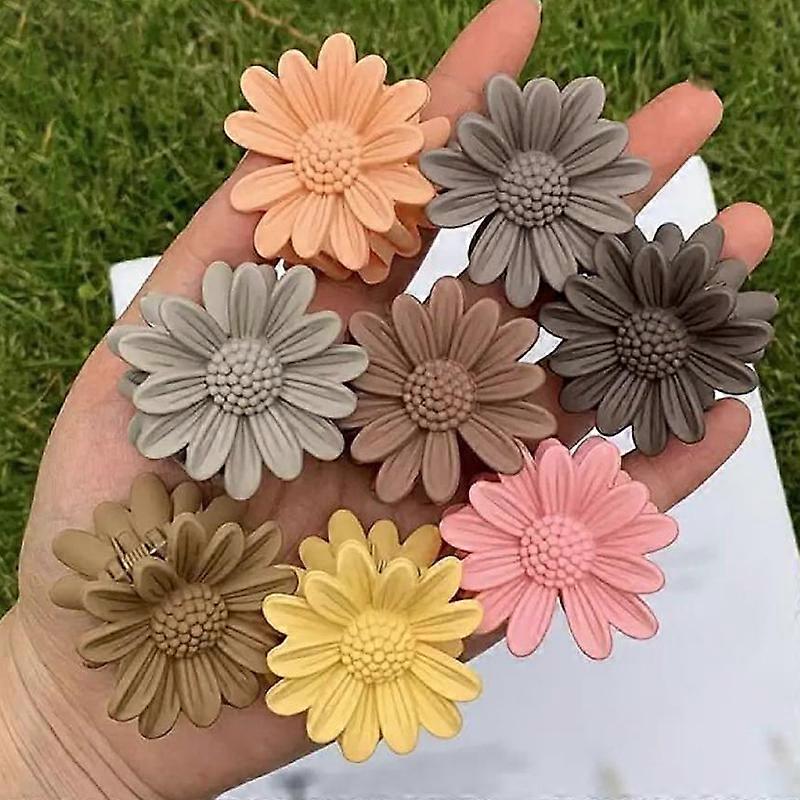 8Pcs Women's Daisy Grab Clip Candy Color Fresh Sweet Cute Small Grab Clip Hairpin Suitable For Everyday Use Headwear Accessories