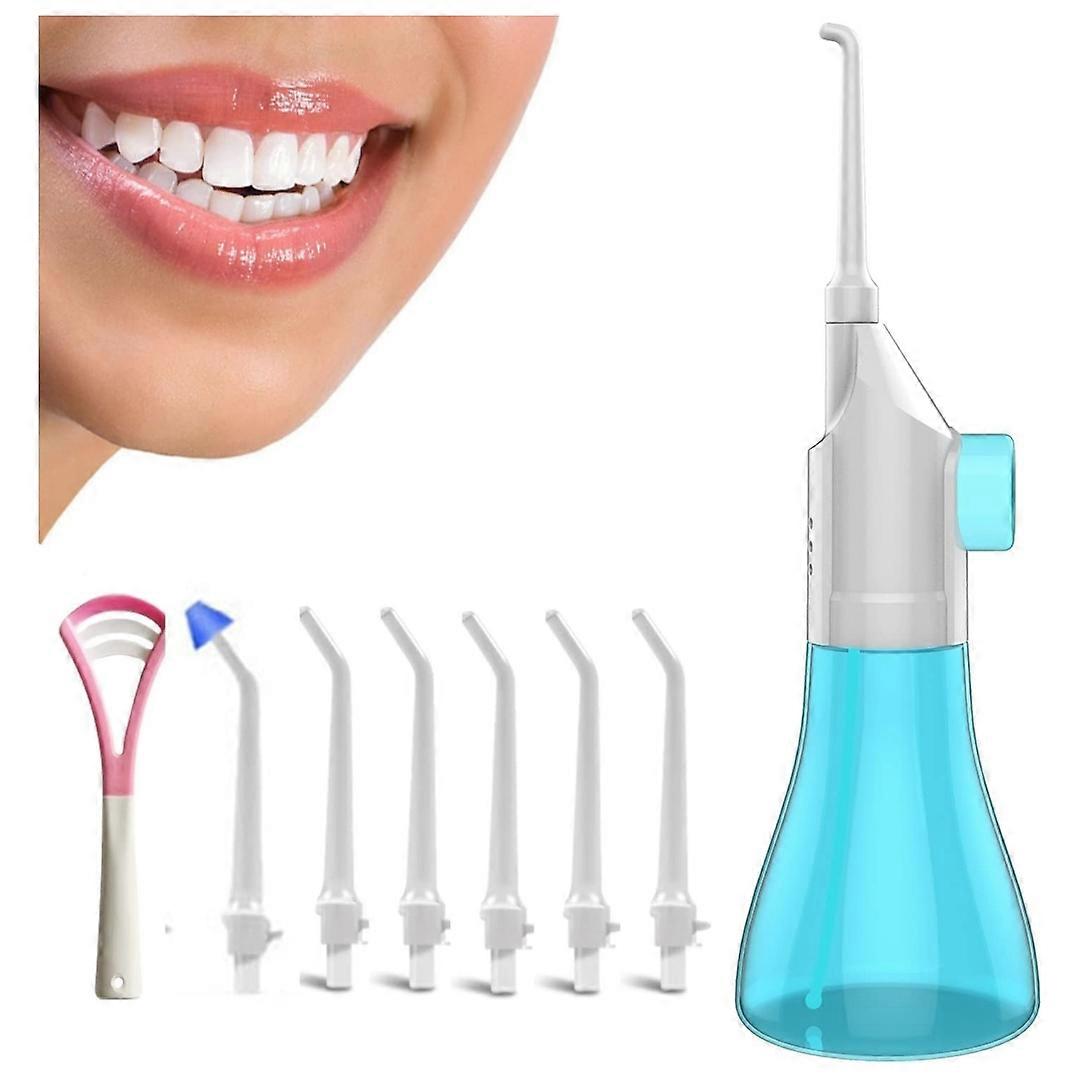 Portable Hand-Powered Water Flosser Dental Manual Oral Irrigator Homeuse Oral Hygiene Kit with Nozzles and Tongue Scraper