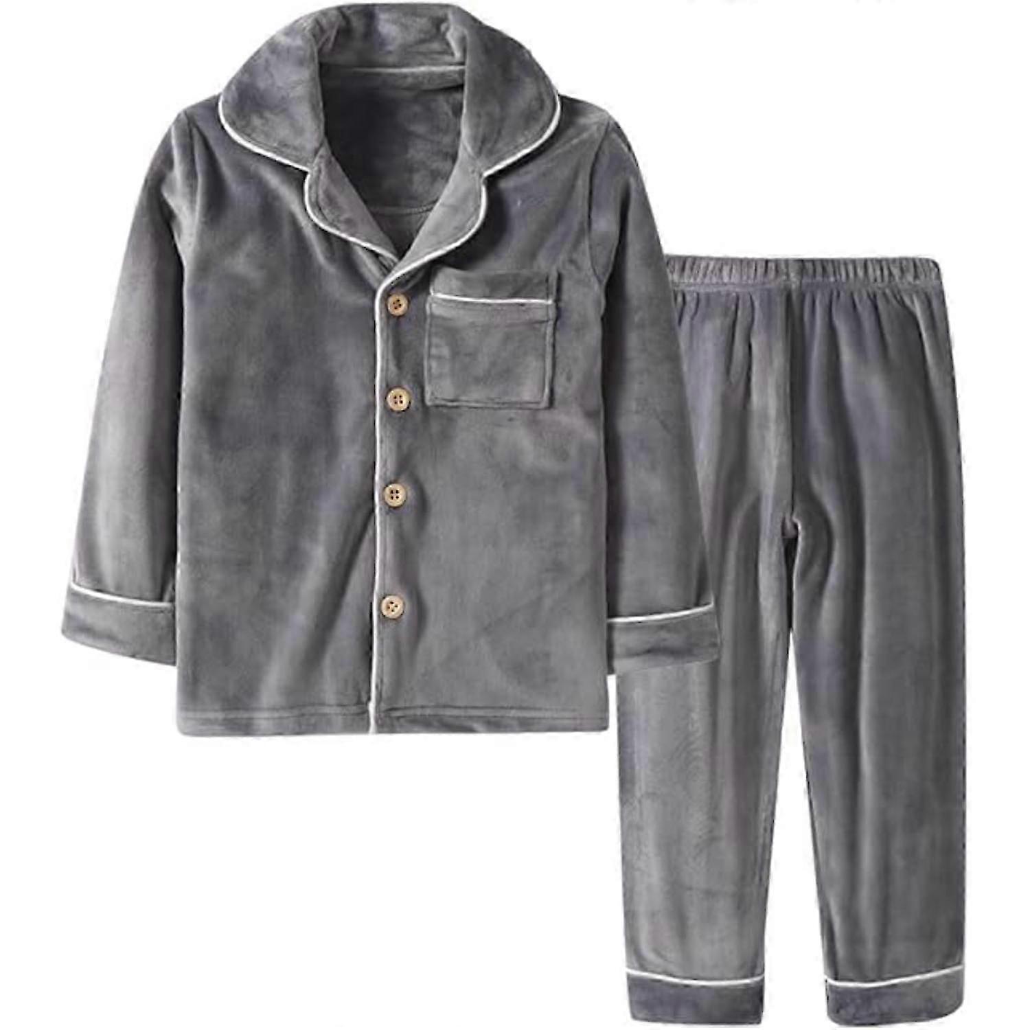 Kids' Coral Fleece Winter Outfit - Warm Long Sleeve Button-Down Set for Boys & Girls