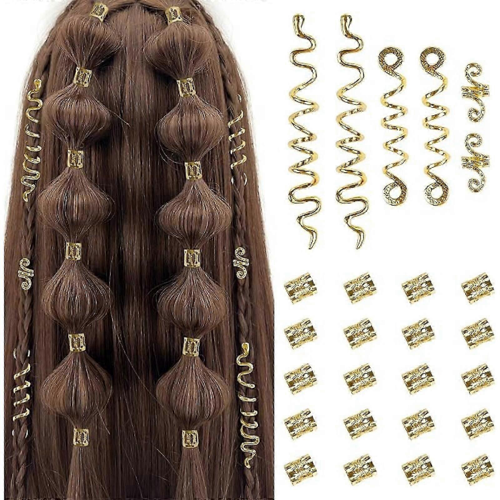 26-Piece Gold Hair Jewelry Set: Metal Dreadlock Beads & Snake Clips for Women's Braids & Locs