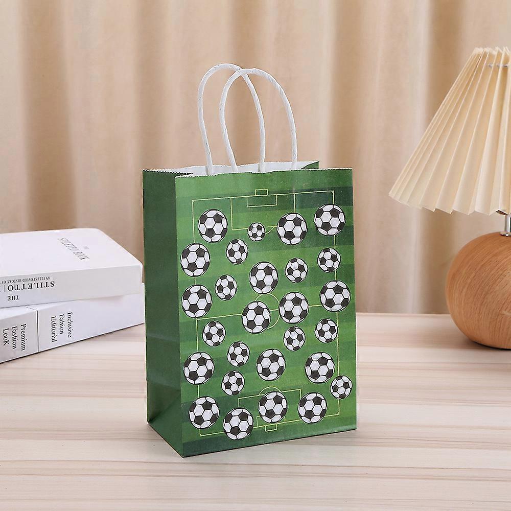 6/24pcs Soccer Party Favors Paper Bag Football Theme Candy Bags with Handle Ties Gift Packaging Bags Kids Birthday Party Decor