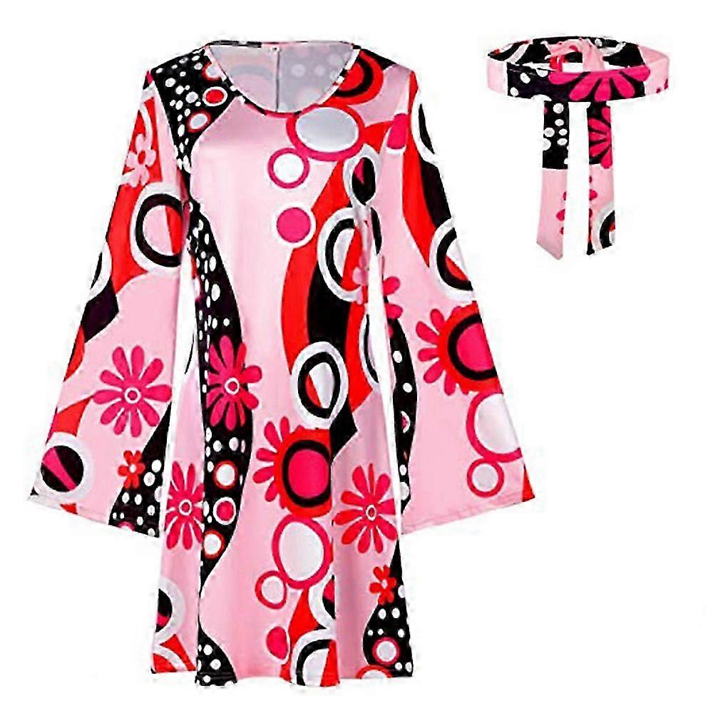 60s/70s/80s Women Hippie Costume Set Retro Cosplay Party Peace Sign Dress Headband 26s