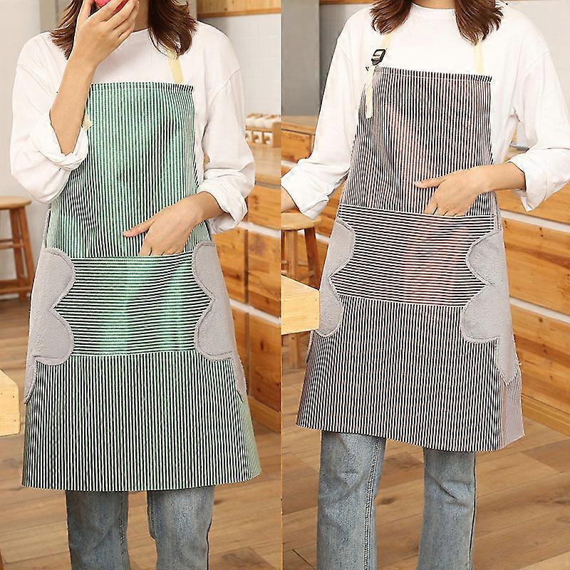 Waterproof Sleeveless Kitchen Apron Striped Chef Apron with Pockets Adjustable Hand Wiping Apron Home Cooking Cleaning Tool