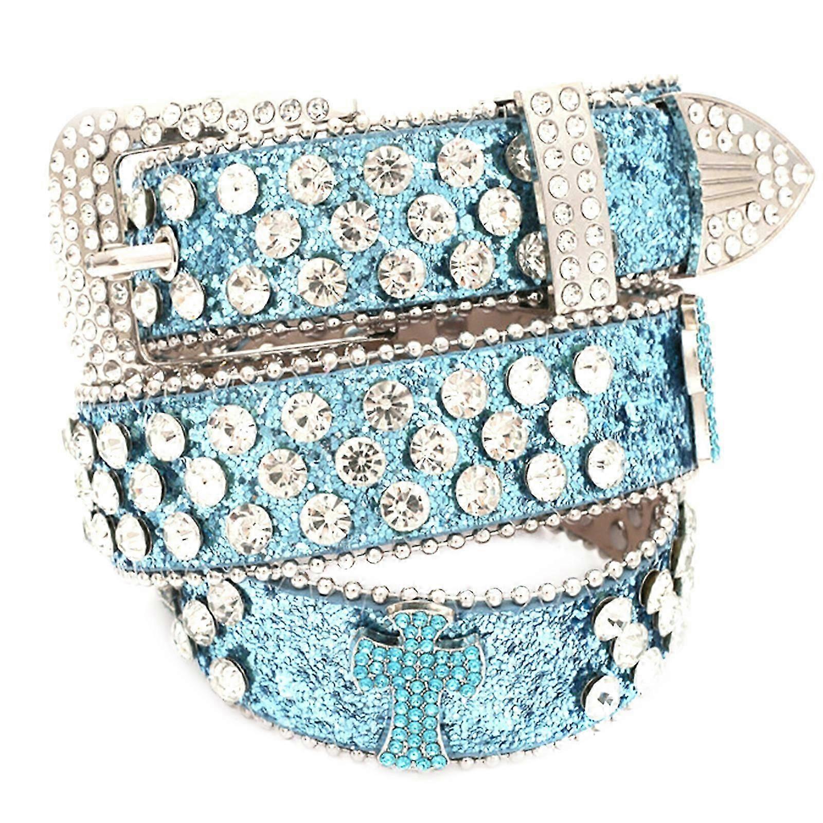 PU Waist Belt with Diamond Adjustable Pin Buckle Waist Belt Woman Girls Jeans Skirt Coat Decorative Sequins Waist Belt Blue 115cm