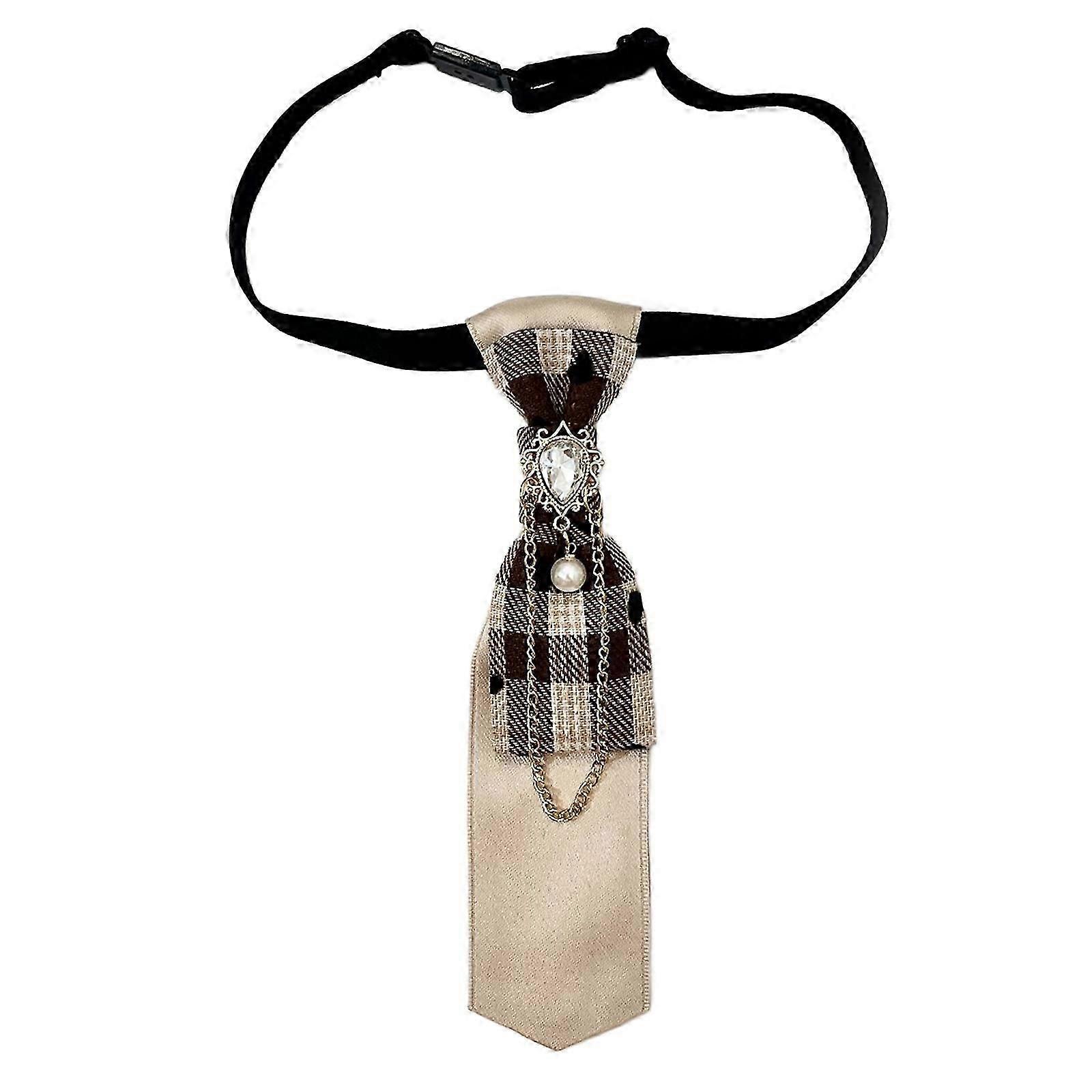 Ivy League Styles Knot Free Tie for Women Adjustable Tie with Fringe Chain Plaids Pattern Club Suit School Event Neckwear khaki heart