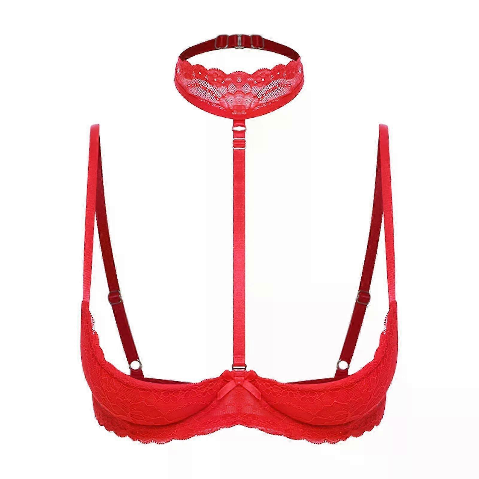 25-26 Women Sexy Open Cup Lace Padded Bra Push Up Underwired Halter Chest Brace Bralette Balconette Exotic Lingerie Nightwear Clubwear