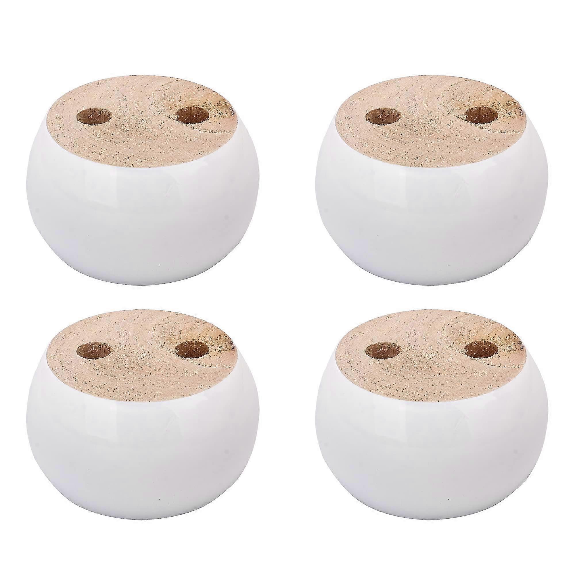 25-26 4pcs 50mm Height White Eucalyptus Wood Round Bun Furniture Feet Sofa Cabinet