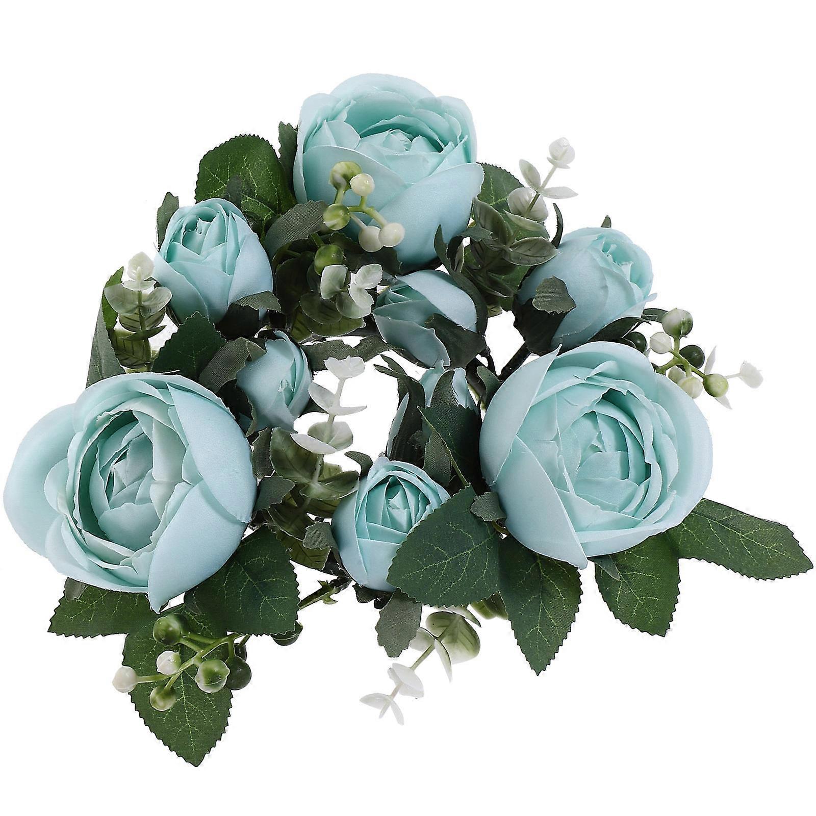 Blue Artificial Rose Candle Ring for Party Decoration Plastic Silk Flower Compact and Lightweight 6.5 Inches
