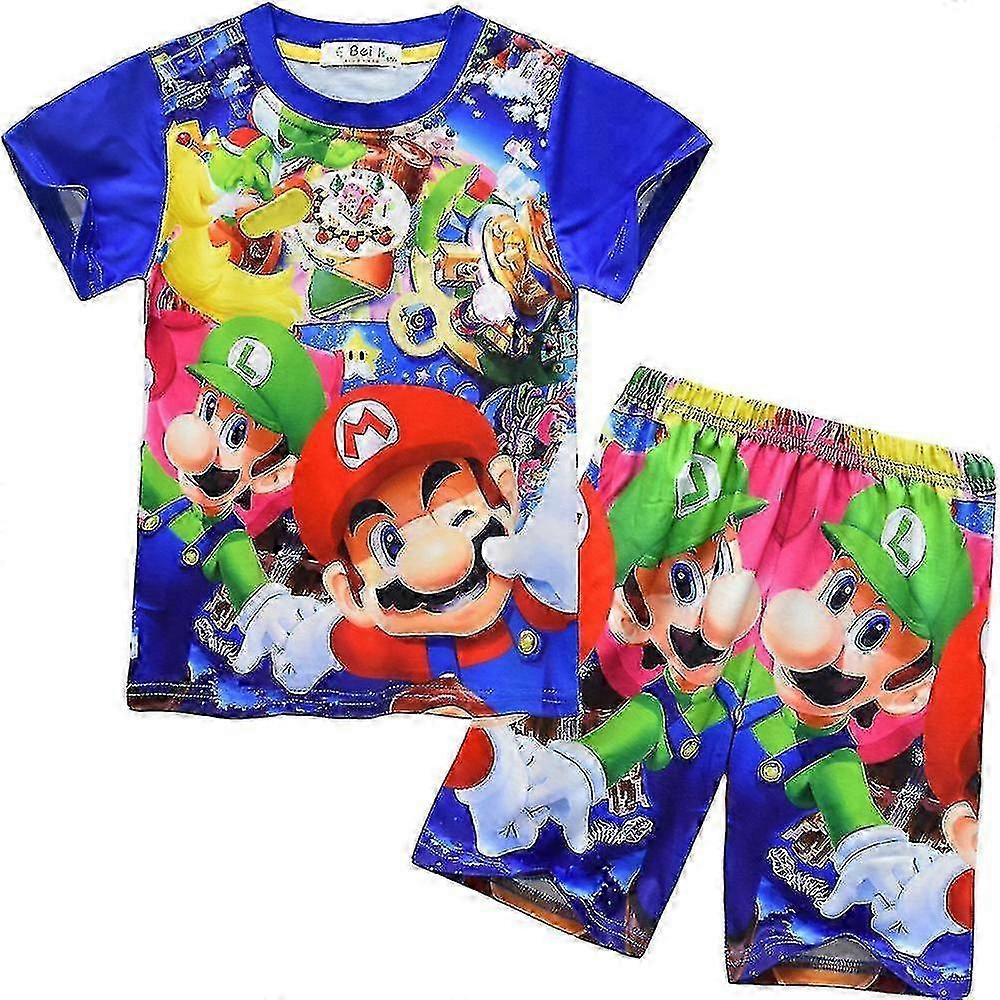 2026 Super Mario Print Kids Boys Outfits Short Sleeve Loose T-shirt Shorts Summer Casual Pajamas Set